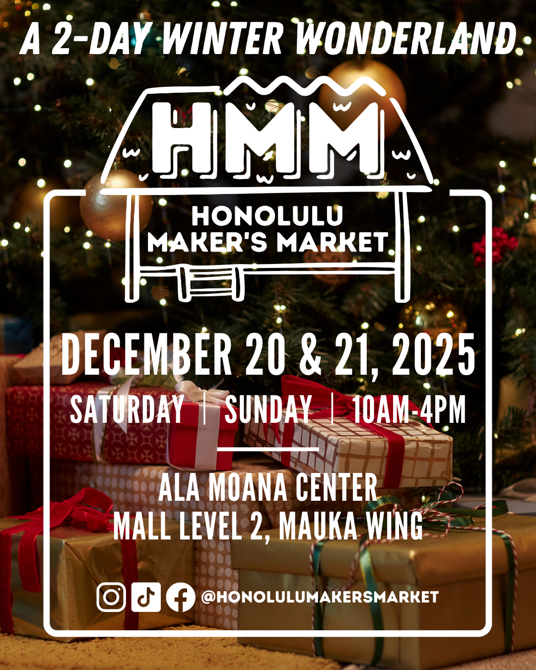 Celebrate the season with us at the Honolulu Maker’s Market Winter Wonderland at Ala Moana.